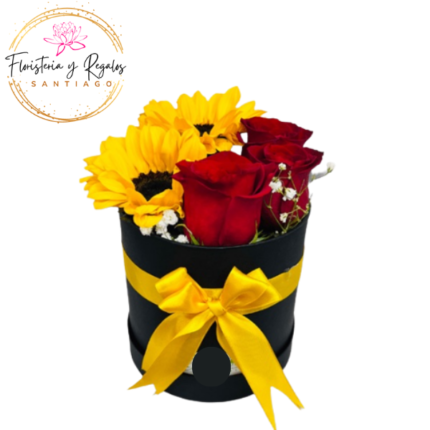 CAJA BOX CILINDRICA 3 ROSAS Y 2 GIRASOLES