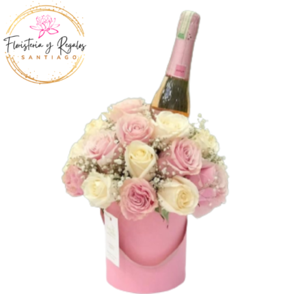 CAJA BOX DE 15 ROSAS IMPORTADAS Y CHAMPAGNE DE 375ML