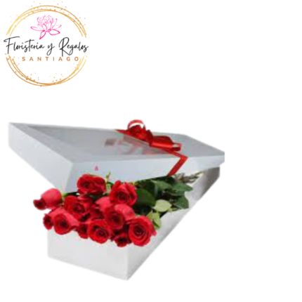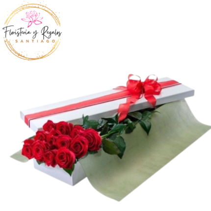 CAJA BOX DE 12 ROSAS IMPORTADAS Y FOLLAJE