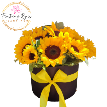 CAJA BOX DE 10 GIRASOLES Y FOLLAJE
