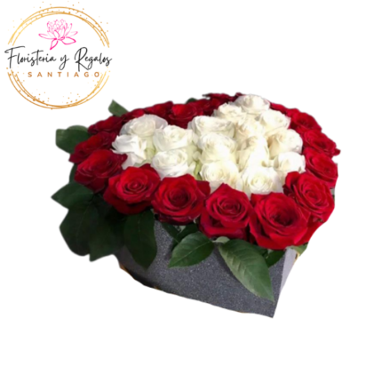 CAJA CORAZON DE 28 ROSAS Y 13 BOMBONES