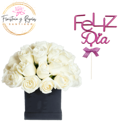 CAJA BOX CUADRADA DE 18 ROSAS Y GLOBO METALIZADO