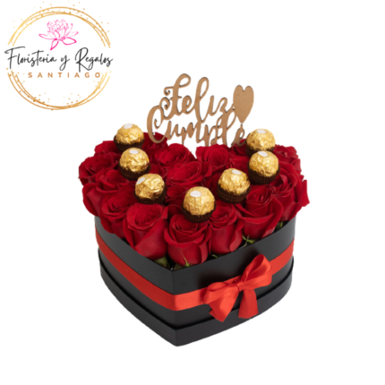 CAJA CORAZON DE 15 ROSAS Y 16 BOMBONES FERREROS ROCHER