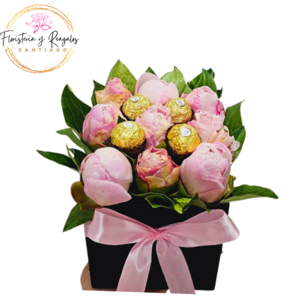 BOX DE 9 PEONIAS Y 4 BOMBONES