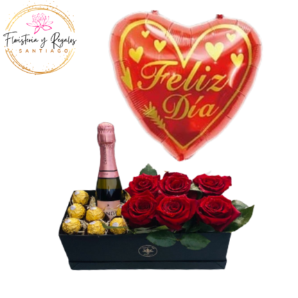 CAJA BOMBONERA DE 6 ROSAS IMPORTADAS Y 6 BOMBONES