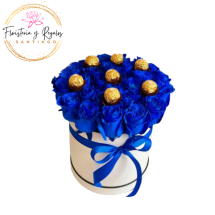 CAJA BOX CILINDRICA DE 15 ROSAS Y 7 BOMBONES FERREROS