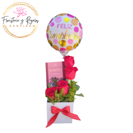 CAJA DE 4 ROSAS BOMBONES DEL SUR Y GLOBO