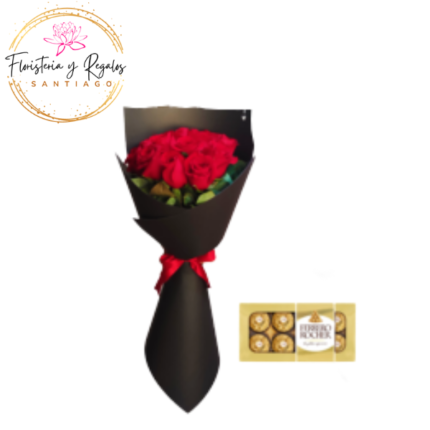 RAMO DE 16 ROSAS Y BOMBONES FERREROS ROCHER 100GRS