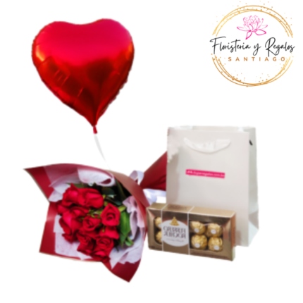 RAMO DE 10 ROSAS, FERRERO ROCHER 100GRS Y GLOBO