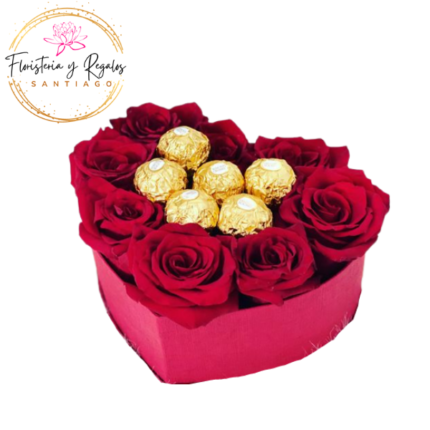 CAJA CORAZON DE 15 ROSAS Y 16 BOMBONES FERREROS ROCHER