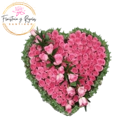 CORONA CORAZON CON 100 ROSAS JABON, TOPIARIO, CINTA, LAZO Y ATRIL