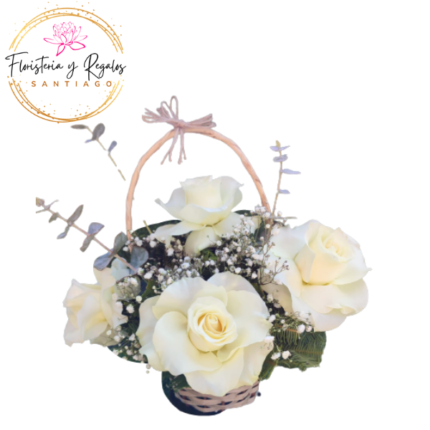 ARREGLITO OFRENDA FLORAL DE 5 ROSAS ETERNAS Y MARGARITAS