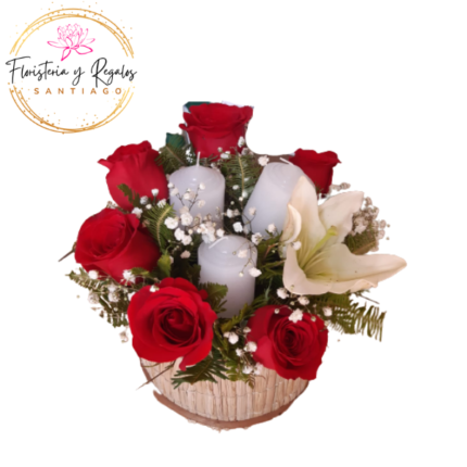 ARREGLO DE 6 ROSAS Y 3 VELAS