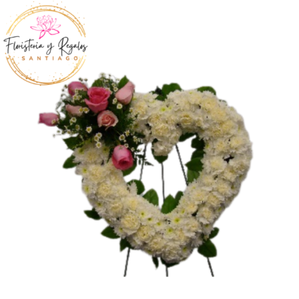 CORONA CORAZON FLECHADO EN ROSAS Y ATRIL