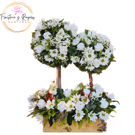 BASE FUNEBRE ARBOL DOBLE TOPIARIO CON JARDIN FLORAL
