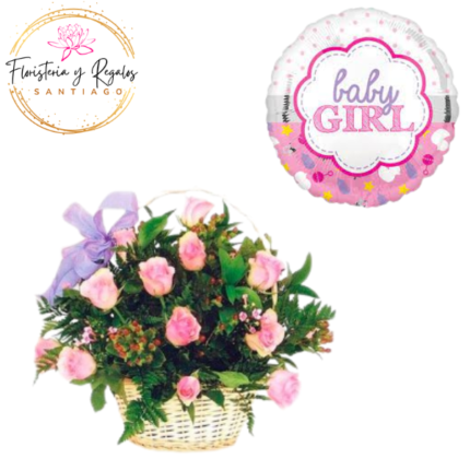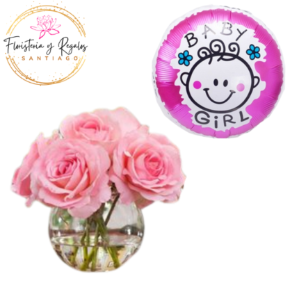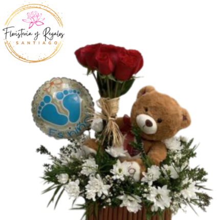 NACIMIENTO 6 ROSAS PELUCHE 25CM + GLOBO