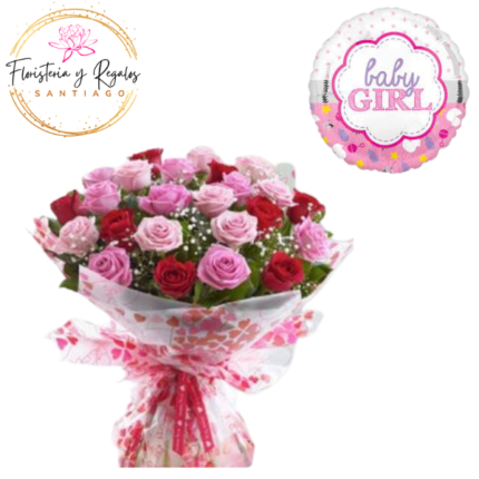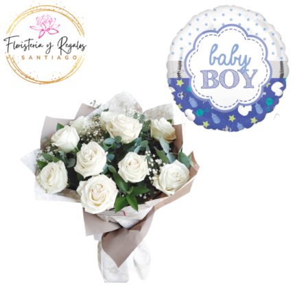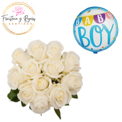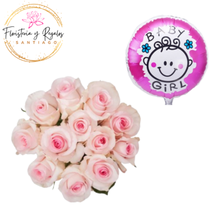 RAMO DE 12 ROSAS BOUQUET + GLOBO