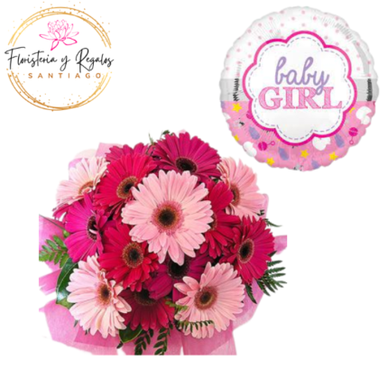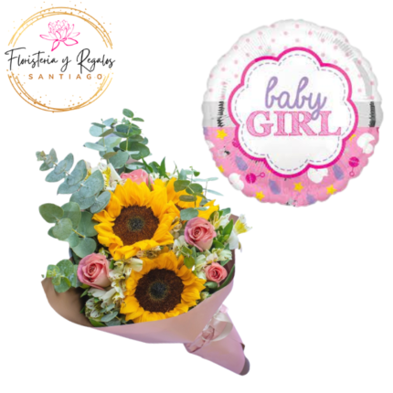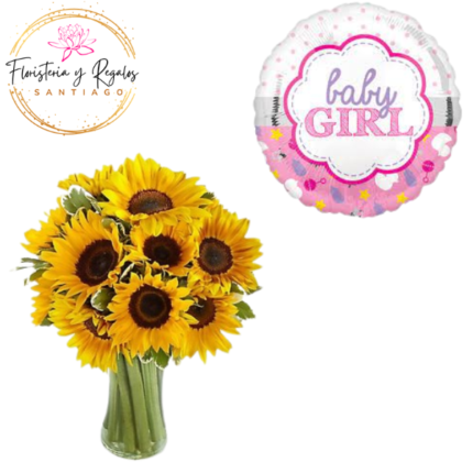FLORERO 4 GIRASOLES 6 GERBERAS + GLOBO