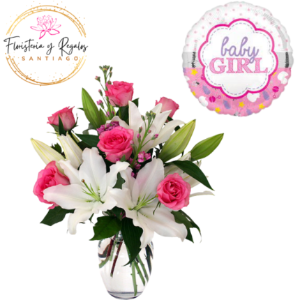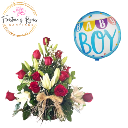 FLORERO 12 ROSAS 6 LILIUM + GLOBO