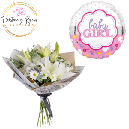 RAMO DE 6 LILIUM 4 GERBERAS 2 ROSAS + GLOBO