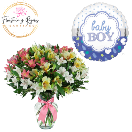 FLORERO ANGELICAL DE ASTROMELIAS + GLOBO