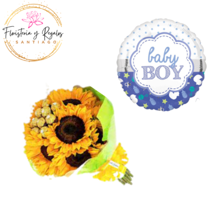 RAMO DE 2 GIRASOLES 4 ROSAS + GLOBO