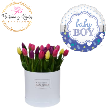 FLORERO 10 TULIPANES Y FOLLAJE + GLOBO