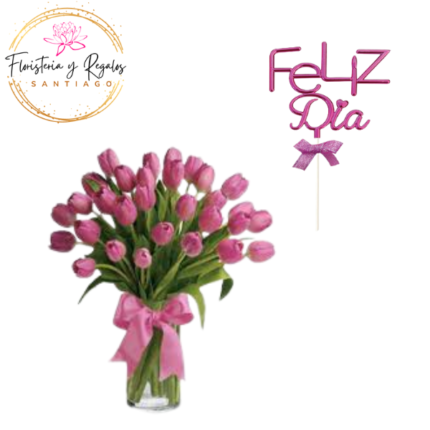 FLORERO 10 TULIPANES 3 GERBERAS Y FOLLAJE + GLOBO