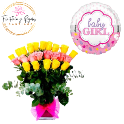 RAMO DE 24 ROSAS DISPERSO + GLOBO