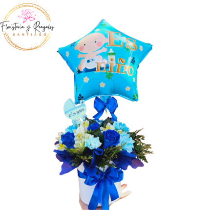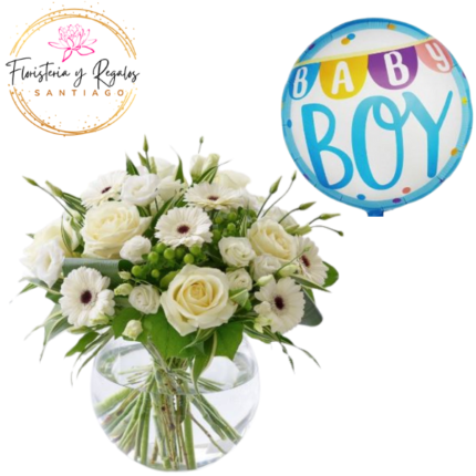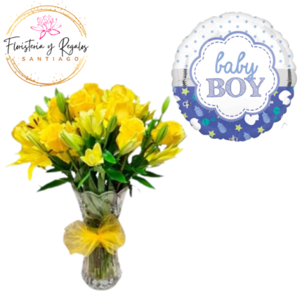 FLORERO 6 ROSAS 6 LILIUM + GLOBO