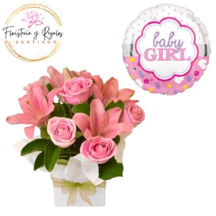 CUBO 6 ROSAS 3 LILIUM + GLOBO