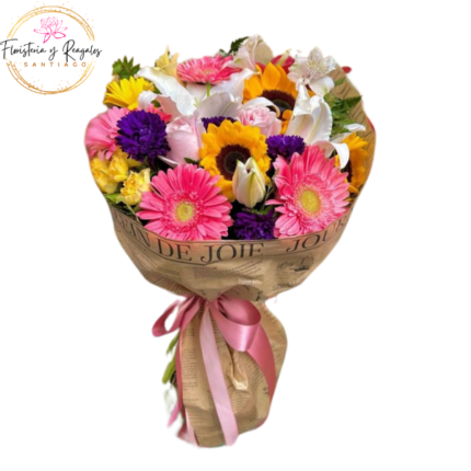 RAMO MIX 3 ROSAS 3 GERBERAS 1 GIRASOL