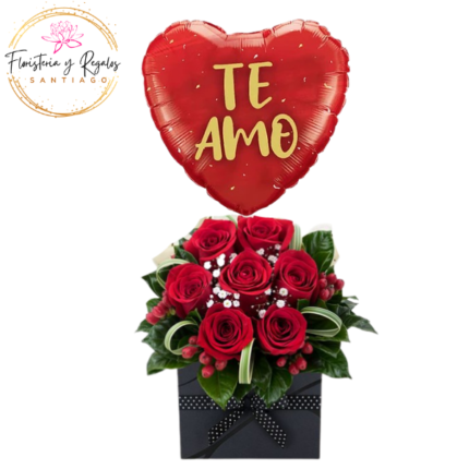 ARREGLO EN CAJA 9 ROSAS BOMBONES + GLOBO