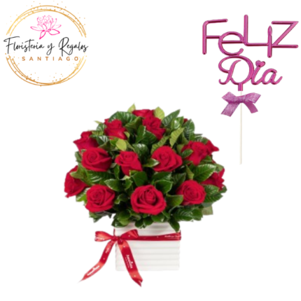 BOX 18 ROSAS CON BOMBONERA 6 BOMBONES