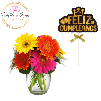 FLORERO 4 GERBERAS + TOPPER