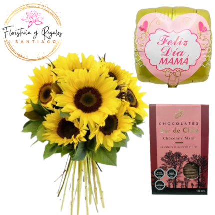 RAMO DE 10 GIRASOLES + BOMBONES DEL SUR + GLOBO