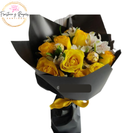 ARREGLO DE 4 GIRASOLES 3 BOMBONES FERREROS ROCHER