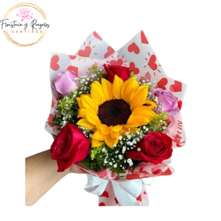 RAMO DE 5 ROSAS 1 GIRASOL