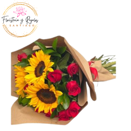 RAMO DE 8 ROSAS 3 GIRASOLES
