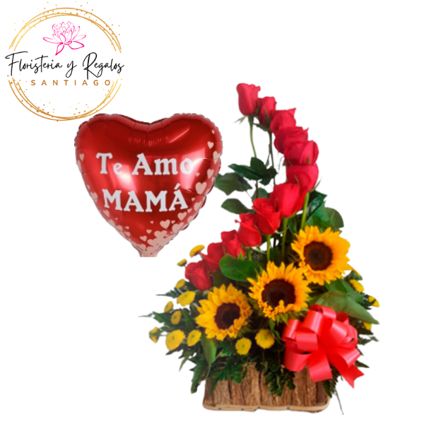 InicioFLORES Y RAMOS DIA DE LAS MADRES ARREGLO DE 12 ROSAS Y 3 GIRASOLES + GLOBO