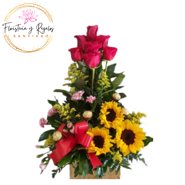 Arreglo de rosas y girasoles