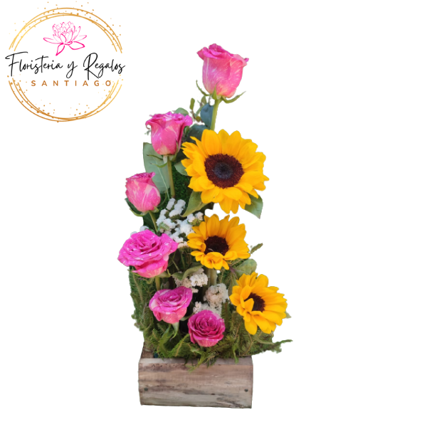 Arreglo con base de 6 rosas 3 girasoles
