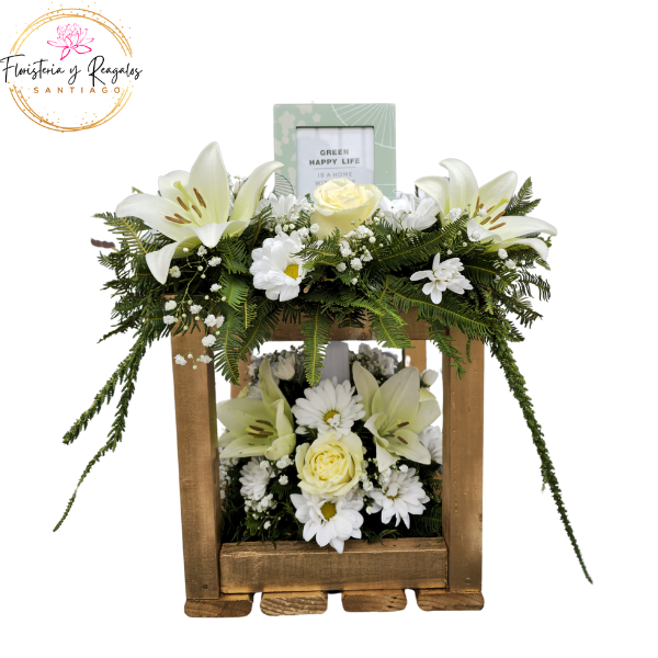 ARREGLO DE CONDOLENCIAS CON FOTO DE TU SER QUERIDO