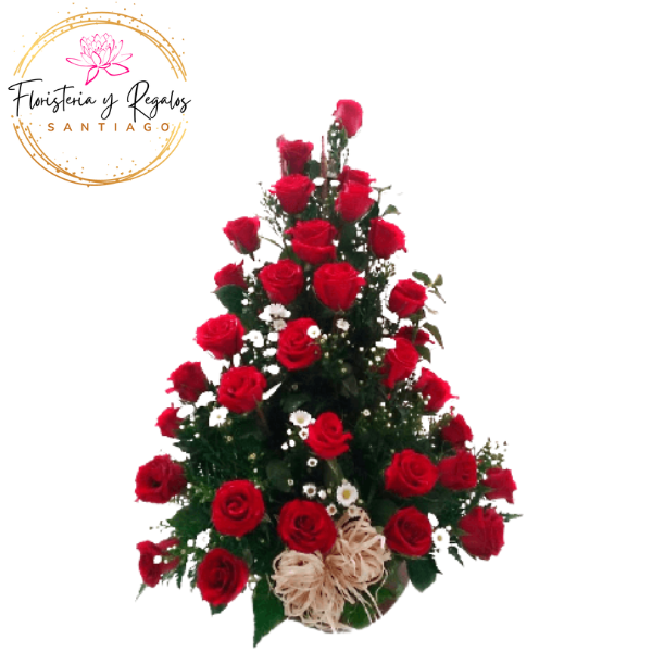 InicioCANASTAS Y ARREGLOS FLORALES ARREGLO EN BASE CON 32 ROSAS