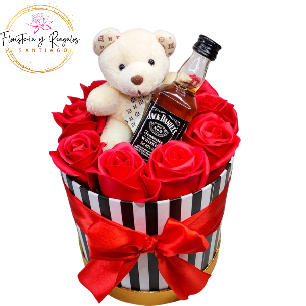 BOX CORAZON 8 ROSAS DE JABON OSO 11 CM BOTELLITA DECORATIVA $22.990