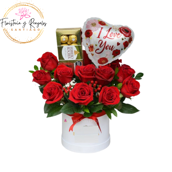 BOX 12 ROSAS + FERRERO ROCHER 100G Y GLOBITO