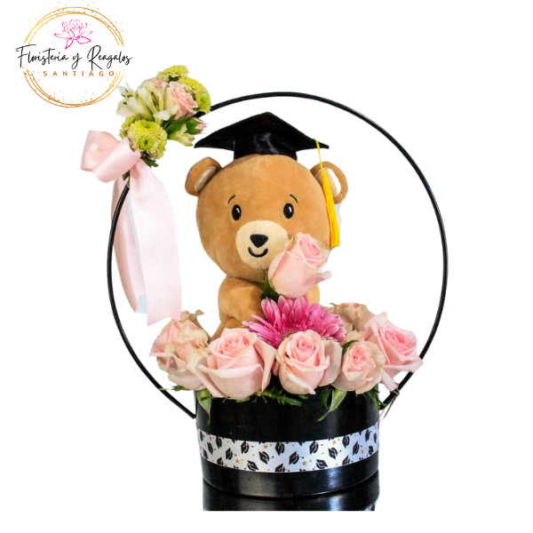 InicioGRADUACION BOX ARO PELUCHE 30 CM 8 ROSAS + GERBERA