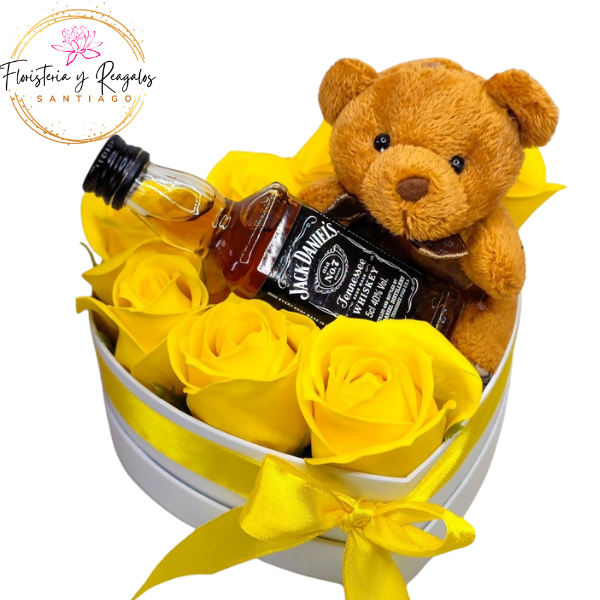BOX CORAZON 8 ROSAS DE JABON OSO 11 CM BOTELLITA DECORATIVA