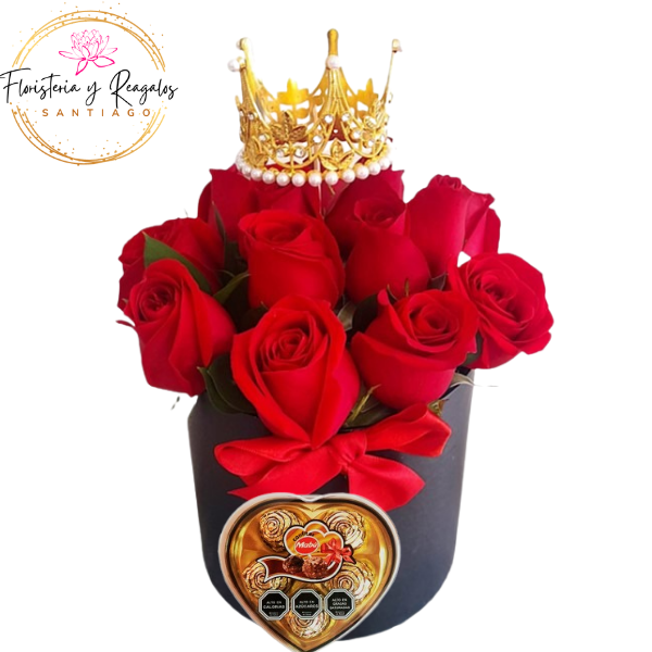 BOX CORONA 12 ROSAS + BOMBONES CORAZON