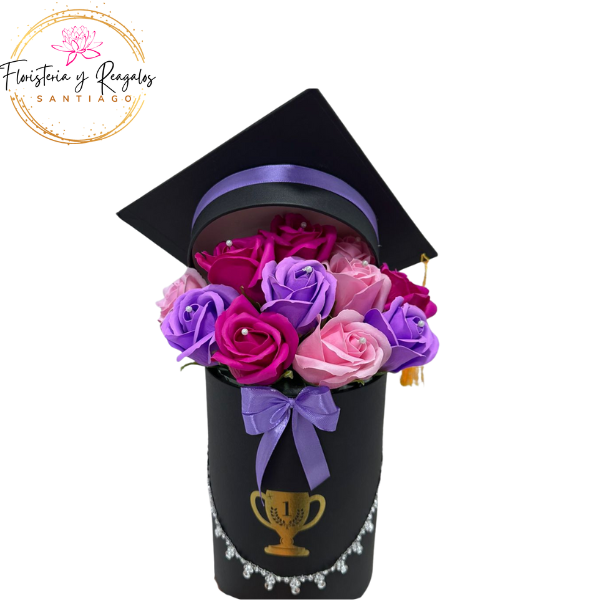 BOX GRADUACION CON 12 ROSAS JABON Y BIRRETE